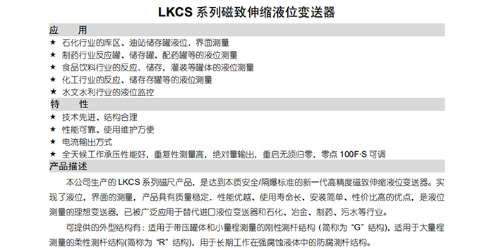 LKCS系列磁致伸缩液位变送器