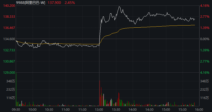 本(ben)日午(wu)后,港(gang)股阿里巴巴倏(shu)忽直线拉升,一度涨超4%,恒生科技是(shi)以由跌转涨。港(gang)股金山云和(he)万国数据皆涨超16%。