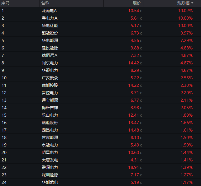 值得注(zhu)意的是(shi),算电协同概(gai)念显示活跃,韶能股份、粤电力A封一字涨停。