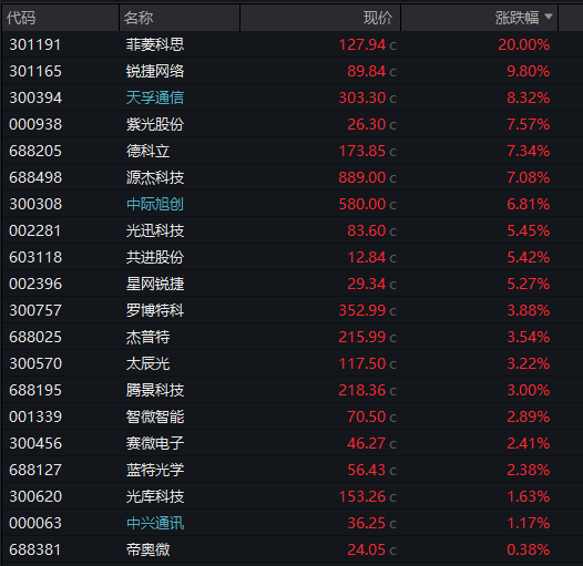 光电路互换机概(gai)念股中(zhong),菲菱科思、紫光股份、光迅科技等纷纷拉升。